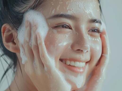 - 溫水潑濕全臉: 水溫是關鍵!太燙會溶掉保護油脂(臉乾繃元兇),太冷毛孔打不開洗不淨。微溫感(比體溫稍低)最剛好。